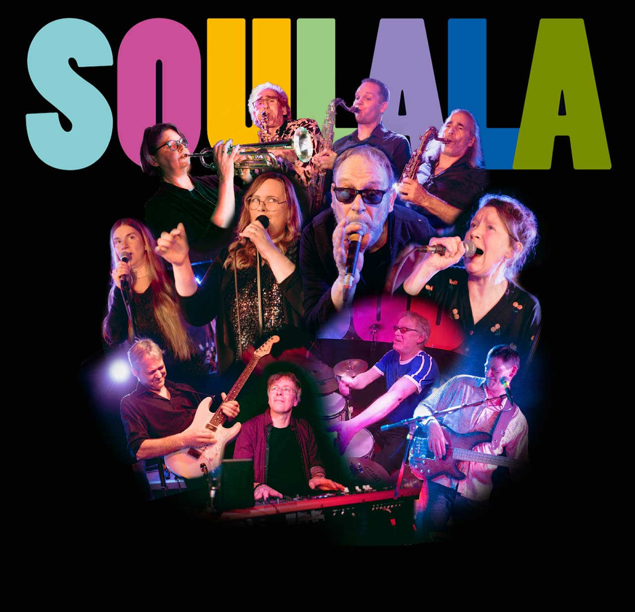 SOULALA: Das ist ein bunter Haufen von zwölf AmateurmusikerInnen, die sich zusammengefunden haben, gemeinsam ein abwechslungsreiches Repertoire grooviger und tanzbarer Soul-, Funk- und Rockmusik auf die Bühne zu bringen. Mit einem bunten Stil-Mix präsentiert die Band nicht nur Genre-Klassiker, sondern auch manche musikalische Rarität. Die SOULALA-Triebfeder ist dabei der Spaß an der Sache und das gemeinsame Feiern mit dem Publikum.